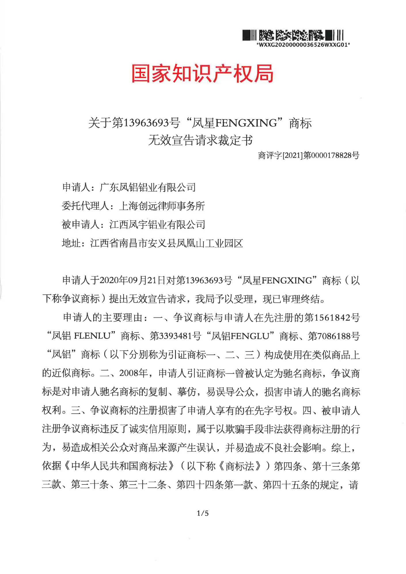 南宁辉知队 | 国家知识产权局:“凤星”商标无效